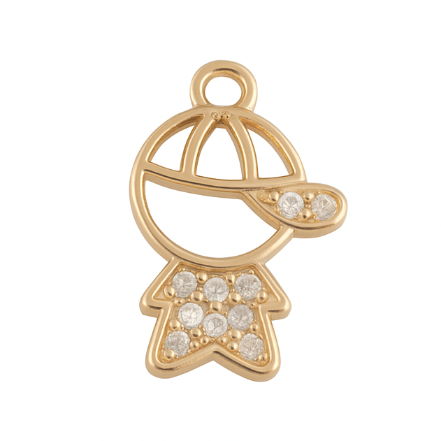 The Charm Little Boy is a delicate and meaningful piece that represents love, joy, and family connection. Perfect to personalize your Juana bracelets or necklaces, this charm shines with clear cubic zirconia and a refined 18K real gold plated finish.