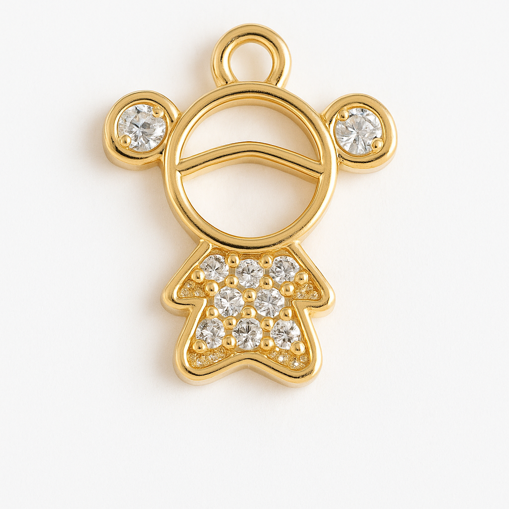 The Charm Little Girl is a delicate and meaningful piece that represents love, innocence, and family connection. Perfect to personalize your Juana bracelets or necklaces, this charm shines with clear cubic zirconia and a refined 18K real gold plated finish.
